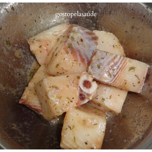 Receitas saudáveis e práticas de fazer. Há uma série de possibilidades, inclusive carnes e peixes. Hoje a dica é como fazer peixes com ela: Cubos de Cação, que é um peixe muito saboroso e também serve para aperitivo. O meu estava congelado, cortei em cubos antes de descongelar totalmente, o corte fica mais bonito.